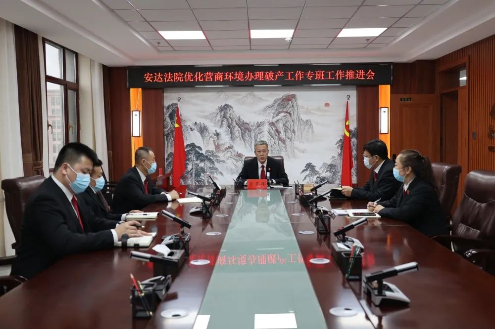 4月21日下午,安达法院召开优化营商环境办理破产工作专班工作推进会,党组书记、院长孙宏辉主持会议,安达法院办理破产案件专班成员参加会议。