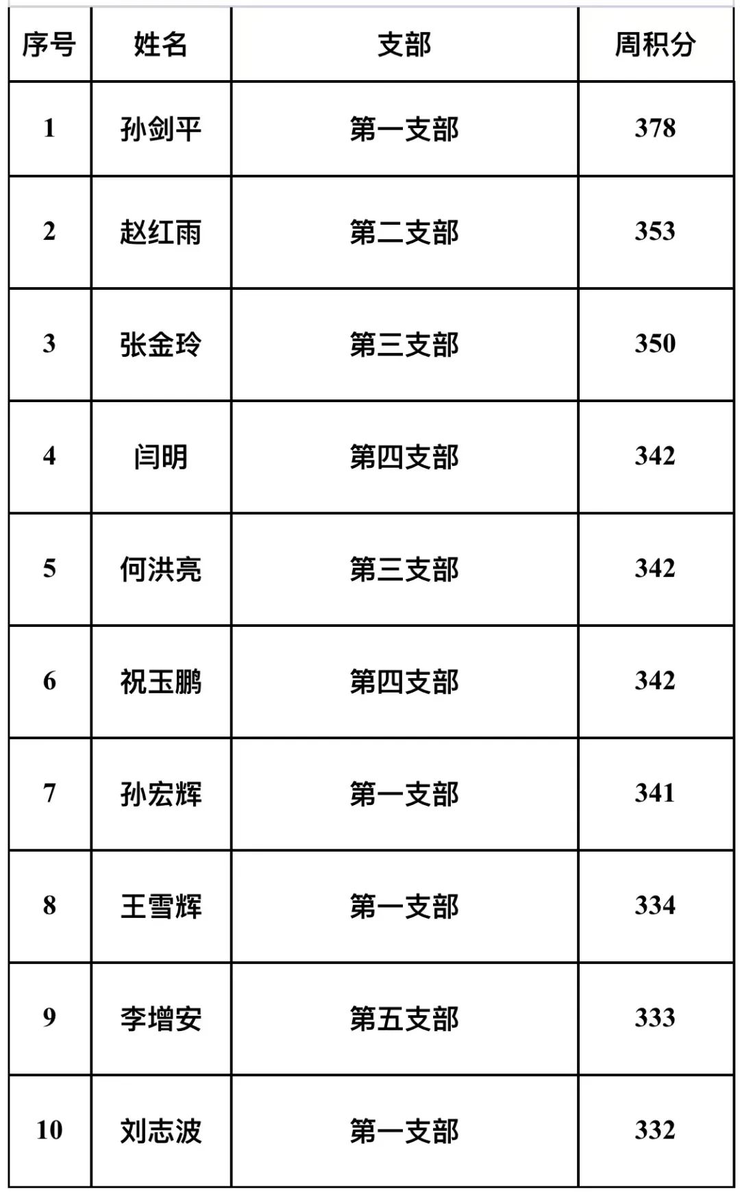 周积分十强榜