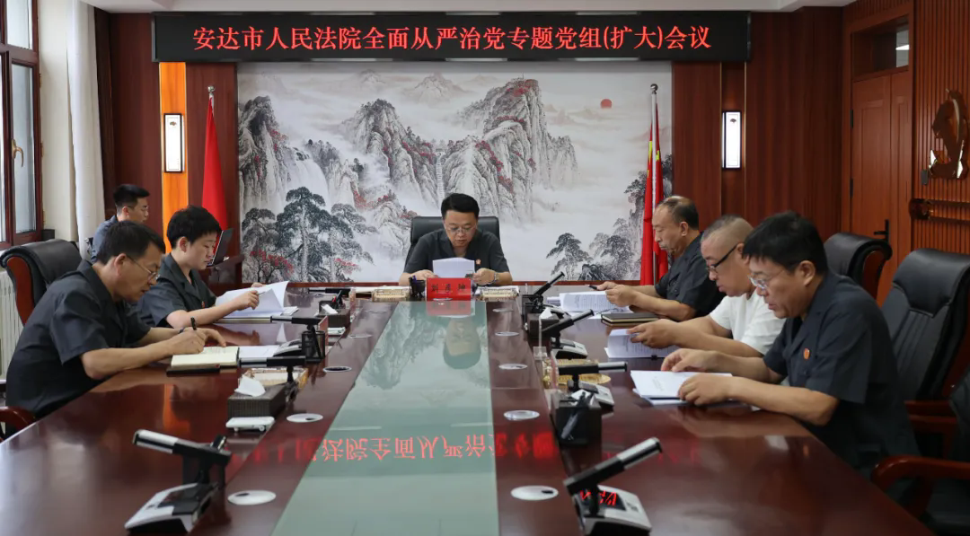 会议总结回顾安达法院上半年全面从严治党工作,结合工作重点调整下半年全面从严治党重点任务责任分工方案以及清单。